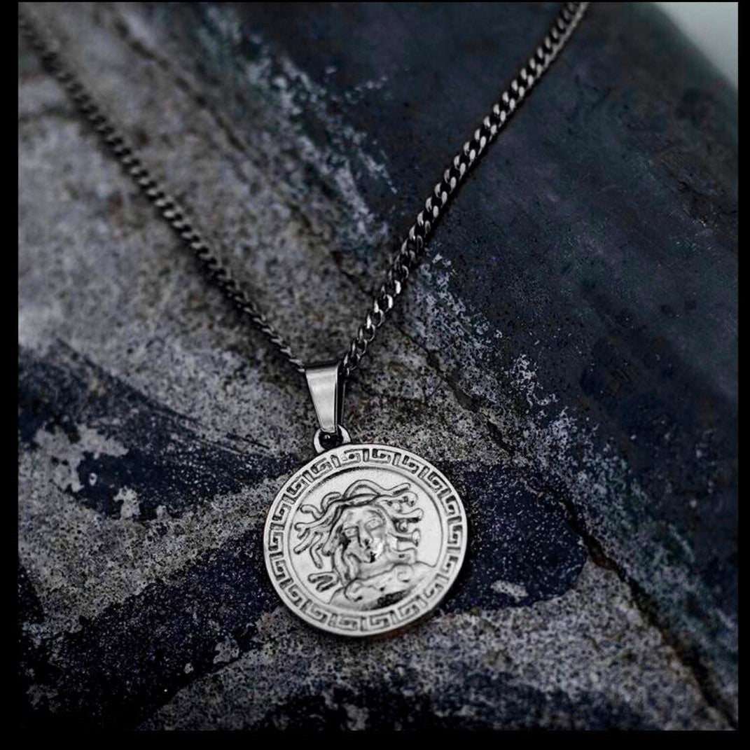 The bestseller Medusa pendant, now in a silver finish.High grade IP Engraving on front.Comes with...