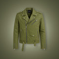Step into bold style with the Olive Command Biker Jacket. Crafted in a striking military green tone, this jacket blends rugged biker aesthetics with a clean, modern edge. Featuring an asymmetrical zipper, polished silver hardware, and a belted hem, it’s built for those who want to stand out while staying effortlessly sharp. Perfect for both casual streetwear and statement evenings, this piece brings an unmistakable confidence to your wardrobe.